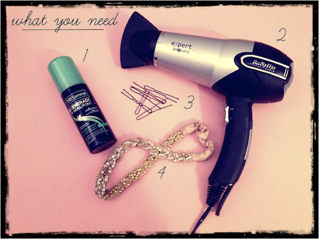 1 – split ends TRESemmé | 2 – Hair dryer BaByliss | 3 – Hairpins | 4 – Head band