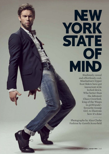 fashion NEW YORK STATE OF MIND Posted on Julho 25, 2010 by Style it Up O menino bonito da série Gossip Girl, Chace Crawford, aka Nate, está simplesmente lindo neste editorial da Esquire UK – edição de Agosto. Não concordam?? Meninos, inspirem-se!! Meninas, aguentem-se!! xoxo Style it Up Gerard Darel Enjoy the Game with Eres